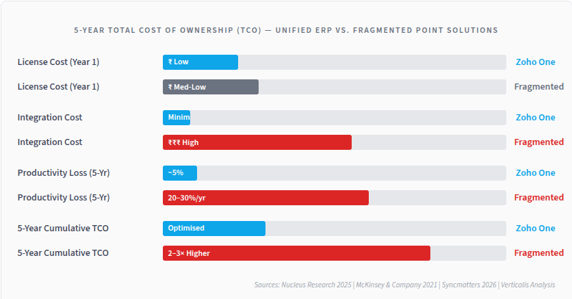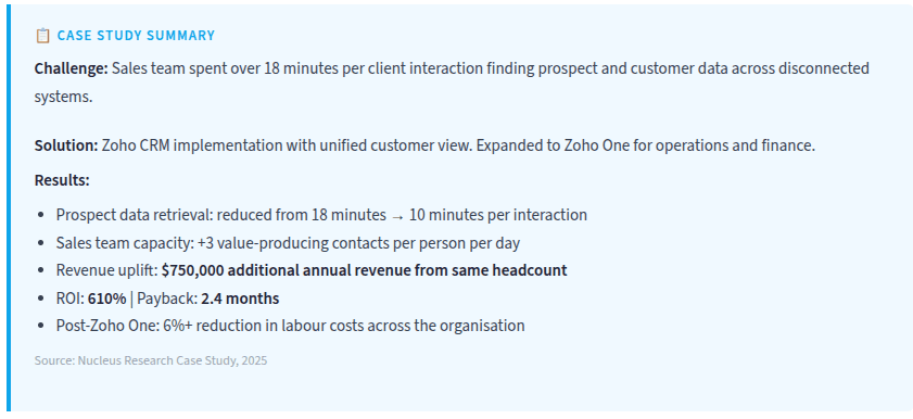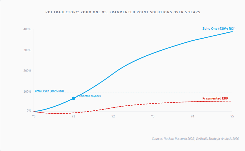 The most rigorous independent analysis of Zoho's business impact comes from Nucleus Research, whose 2025 study across multiple organisation types produced findings that should permanently reframe how Indian business leaders think about ERP investment decisions.